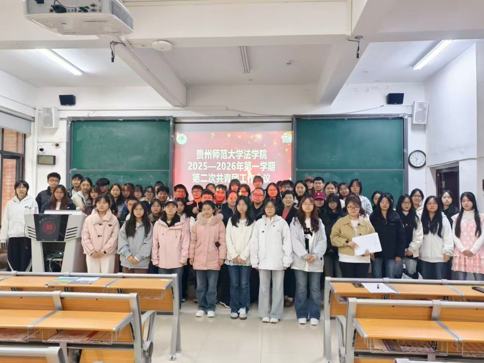 法学院 2025-2026 学年第一学期第二次共青团工作会议于2025年11月10日在法学院9102教室召开。院党委副书记欧秀松、院团委书记杜维娜出席会议,学院团委、学生会、青年志愿者分会全体成员参加。