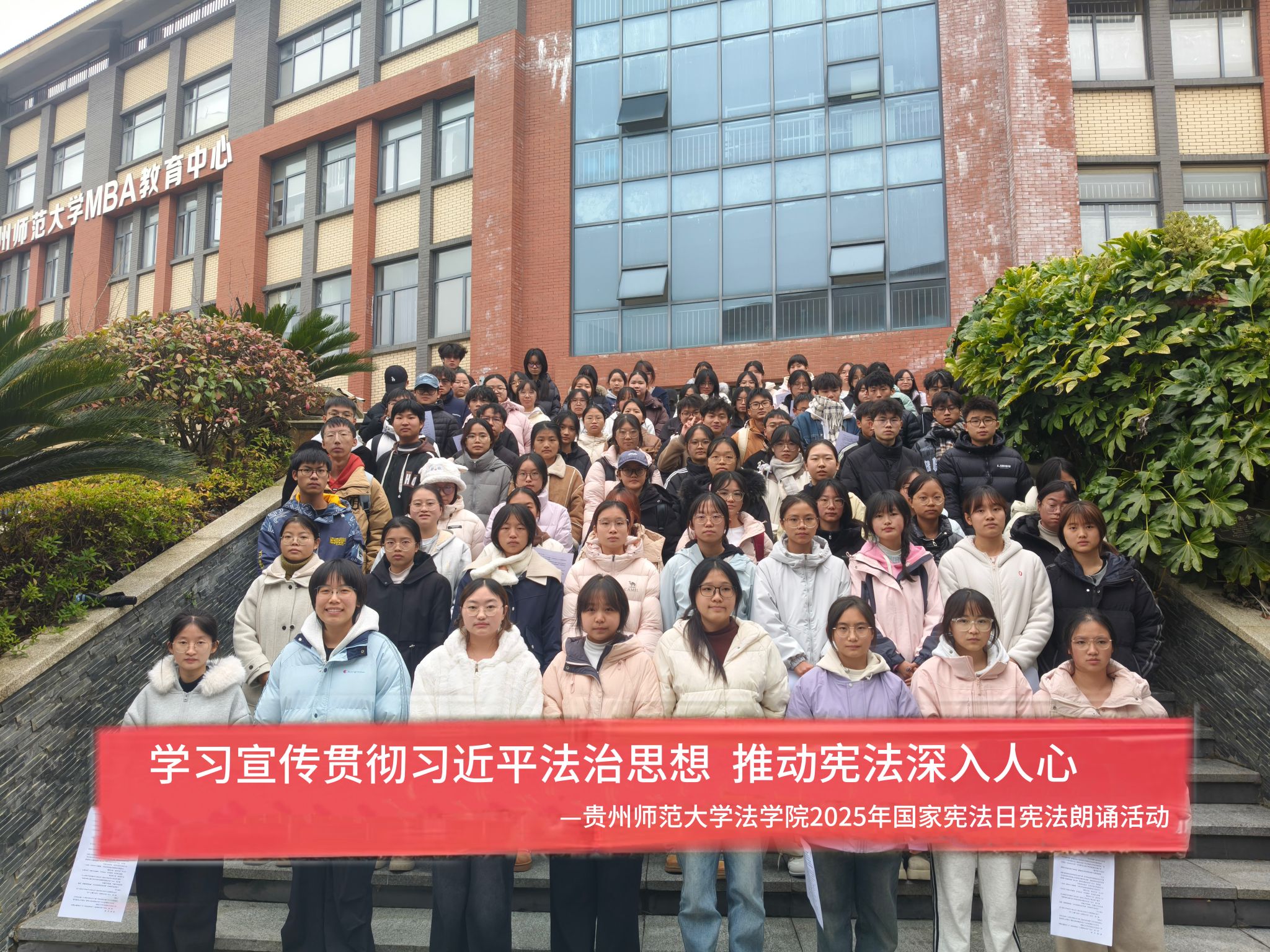 在第十二个国家宪法日暨第八个“宪法宣传周”到来之际,贵州师范大学法学院学生会联动校学生会,于2025年12月4日积极举办“宪声润心·法铸青春”宪法诵读活动,深入学习宣传贯彻习近平法治思想,弘扬宪法精神,培育时代新人。