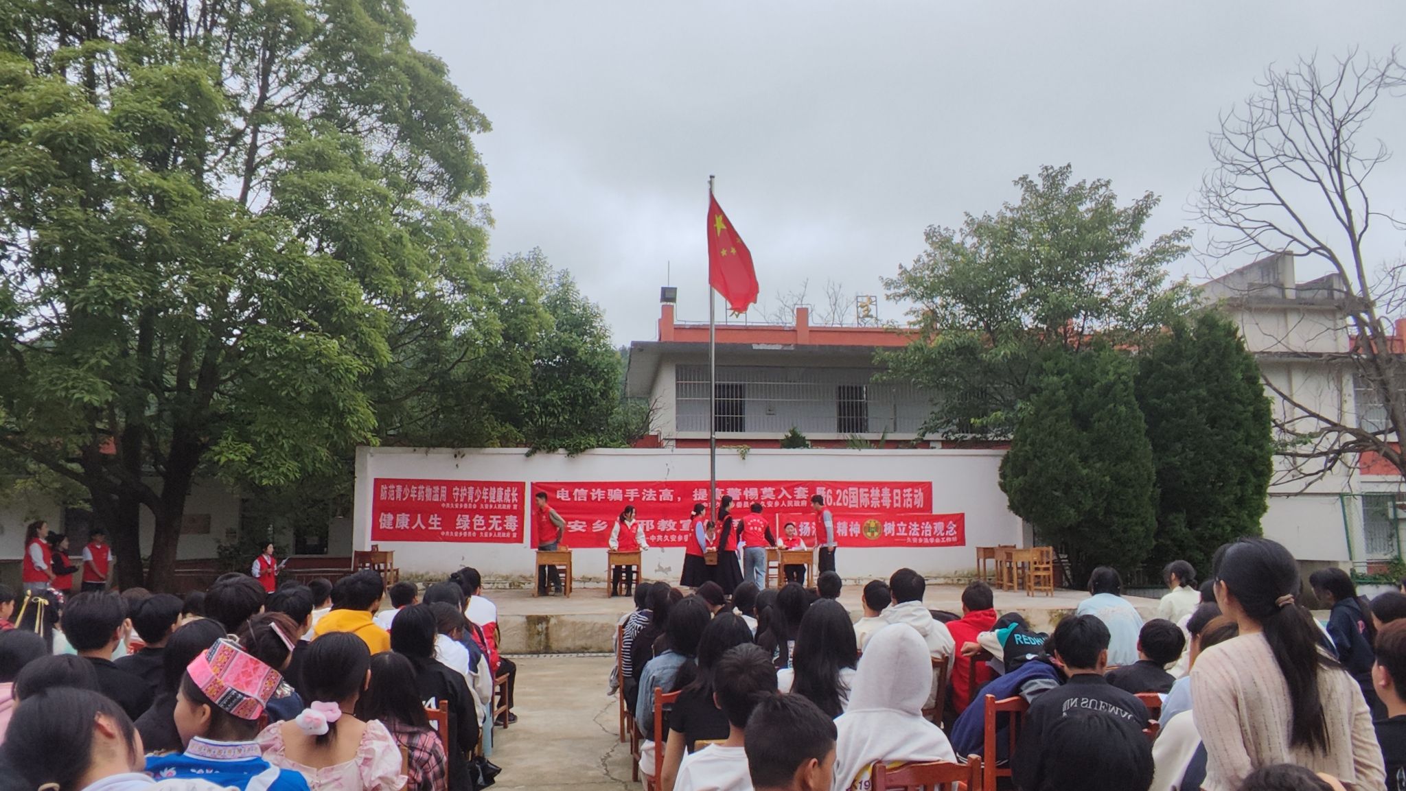 为深入贯彻落实团中央关于实施“大学生社区实践计划”的部署要求,推动高校青年学生走进基层、服务社会,深化大中小学思政教育一体化建设,2025年5月30日,贵州师范大学法学院青年志愿者分会赴贵阳市花溪区久安乡中学,开展“大学生社区实践计划”专项活动——“普法宣讲进校园,法治护航助振兴”主题普法教育。活动通过法律情景剧与模拟法庭等沉浸式形式,为300余名乡村中学生带来一堂生动而深刻的法治思政课。法学院党委副书记欧秀松、久安乡党委副书记廖森杰、法学院团委书记杜维娜出席活动。