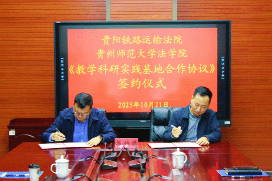 为深化法学教育改革、强化实践教学、推动科研与司法实务融合、提升人才培养质量与服务法治建设能力,2025年10月21日上午,贵州师范大学法学院(纪检监察学院)与贵阳铁路运输法院举行“教学科研实践基地”签约暨揭牌仪式。贵州师范大学法学院(纪检监察学院)党委书记梅应贤、副院长卫欢,贵阳铁路运输法院党组书记、院长何陆坤及双方相关负责同志出席活动。