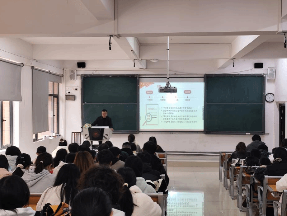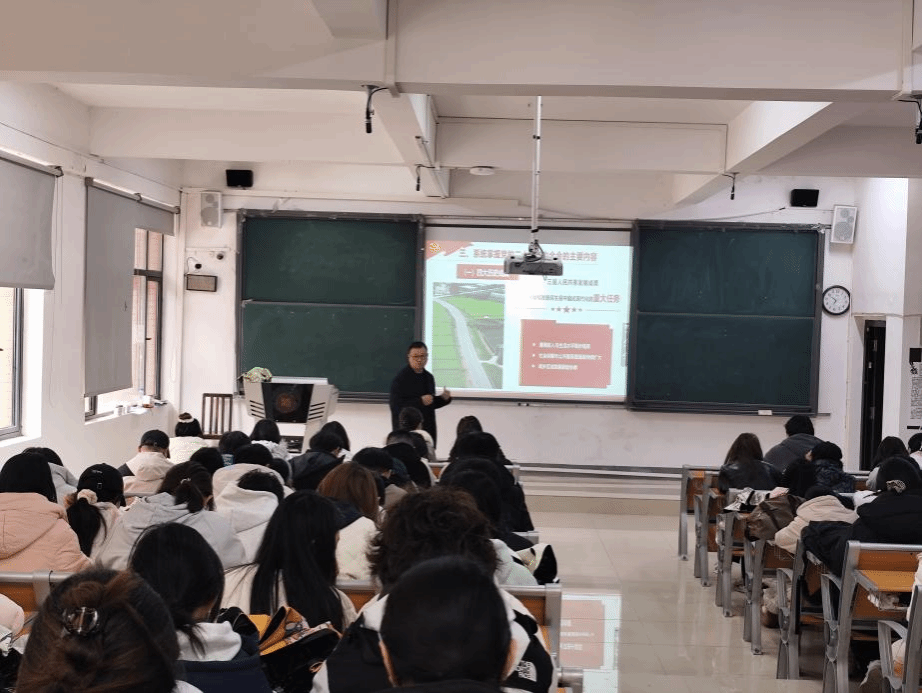 为深入贯彻党的二十届四中全会精神,引导广大青年学生深刻把握全会的重大意义、精神实质与实践要求,推动全会精神在学生中落地生根,12月10日下午,法学院党委书记梅应贤在学院9102教室为2024级全体本科生作题为《深入学习贯彻党的二十届四中全会精神》专题宣讲。